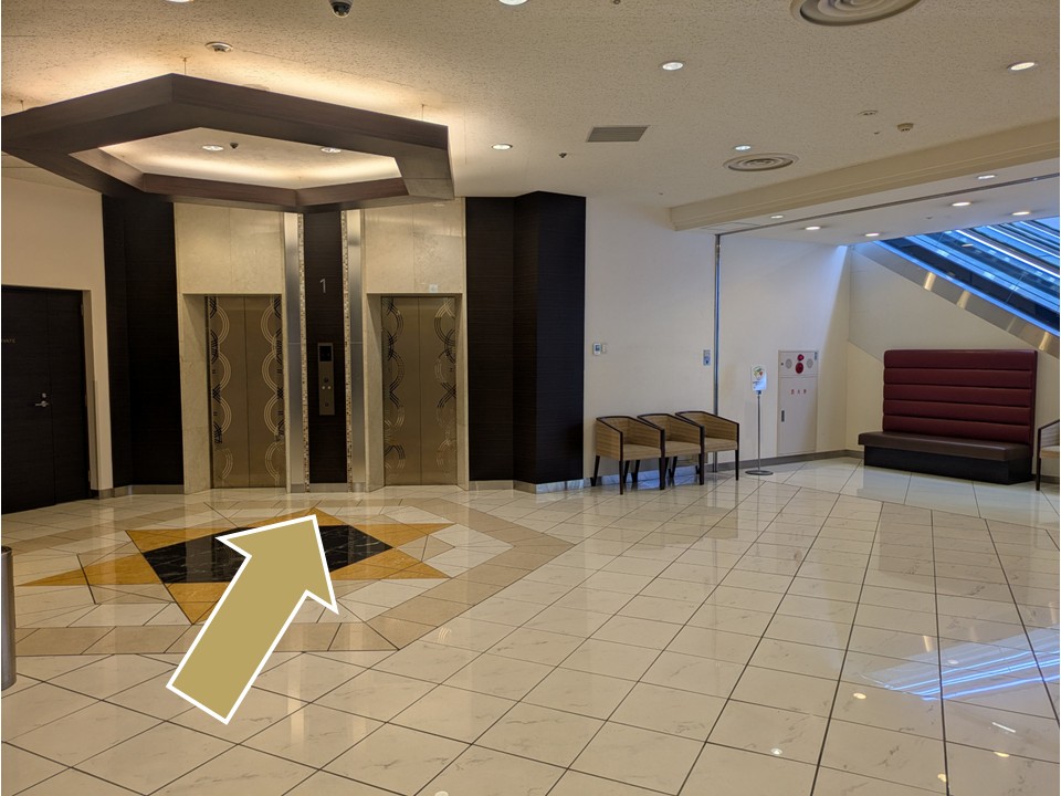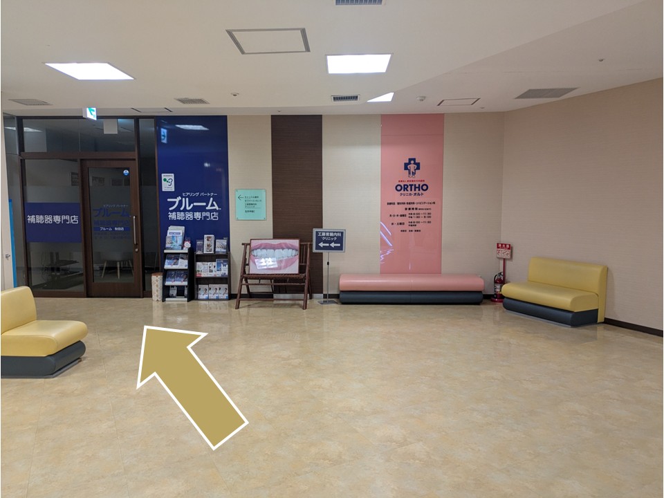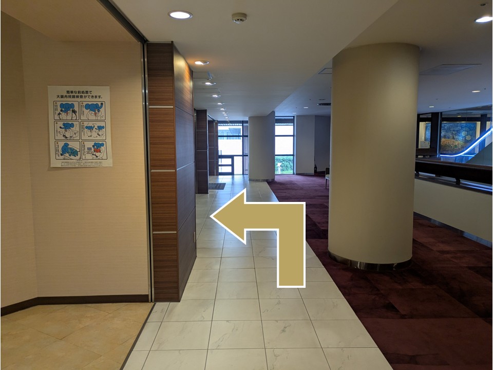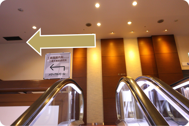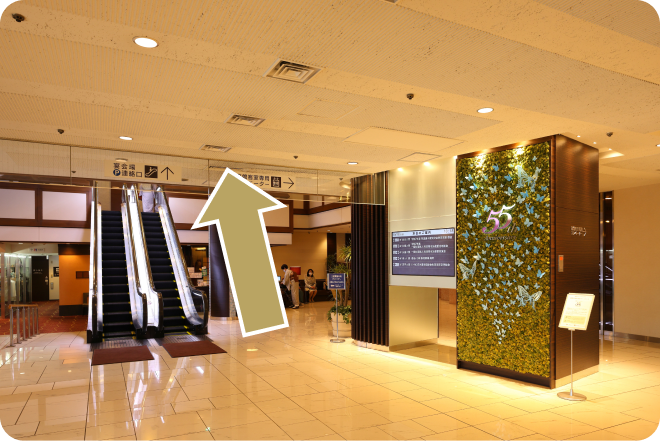 ②エントランス左側にあるエスカレーターで、2階へお上がりください。