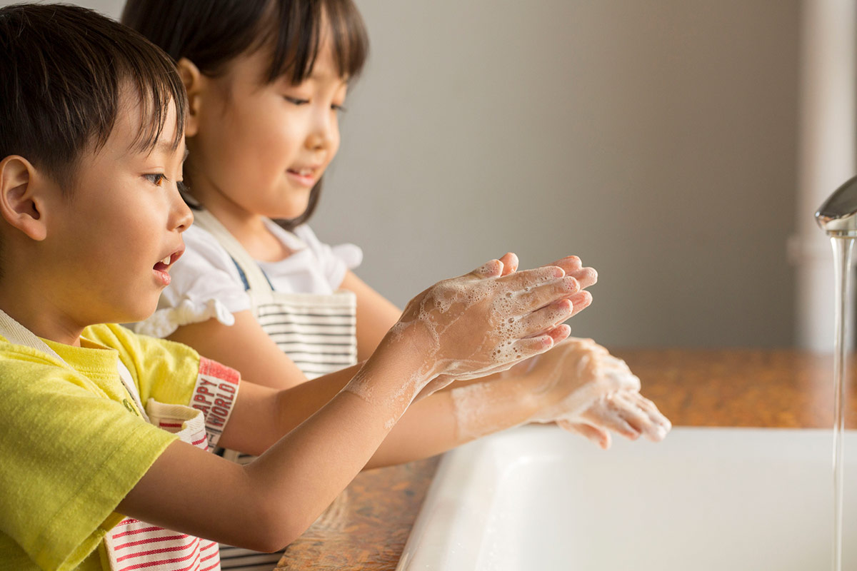 感染性胃腸炎は周囲への感染リスクがあるため、患者様ご自身はもちろん、周囲の方々への感染予防対策も重要です。トイレの後、調理前や食事前に手洗いの徹底、タオルやコップを共用しない、0.1%次亜塩素酸ナトリウム水溶液で消毒することなどが重要です。ノロウイルスなどのウイルスはアルコールでは簡単に不活化されないので、家庭用漂白剤や次亜塩素酸ナトリウム溶液で消毒してください。